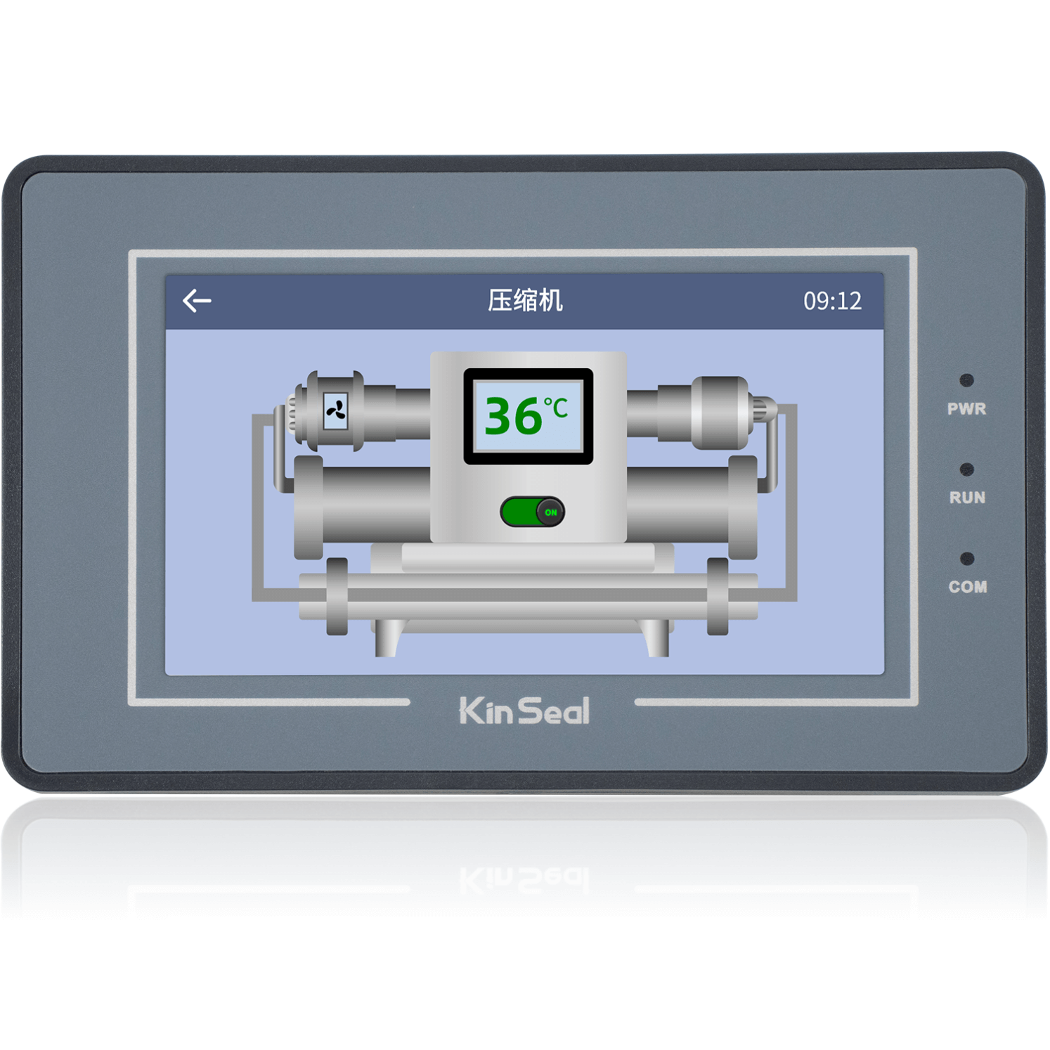 金璽HMI應(yīng)用在超聲波控制上,安裝在控制機箱上對超聲波進行數(shù)據(jù)設(shè)定和監(jiān)控。